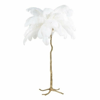 Lampa podłogowa TIFFANY 175 beżowa mosiądz / naturalne pióra