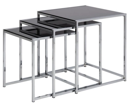 Cross Trio to zestaw trzech szklanych stolików od duńskiej marki ACTONA.Blaty zostały wykonane ze szkła w kolorze czarnym. Podstawy są wykonane z chromowanego metalu.Dzięki możliwości schowania stolików jeden, pod drugim, oszczędzamy miejsce.Zestaw doskonale sprawdzi się w salonie, sypialni lub gabinecie.Wymiary:wys. 50 cm / szer. 50 cm / gł. 55 cmwys. 45 cm / szer. 45 cm / gł. 50 cmwys. 40 cm / szer. 40 cm / gł. 45 cmBlat: gr. 8 mmWaga netto: 18,8 kgWymiary opakowania: 57,2 cm / 13,3 cm / 53 cm.
