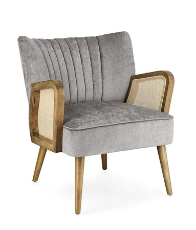 Podłokietniki z naturalnego rattanu wprowadzają lekkość i organiczny akcent, oferując jednocześnie wygodne oparcie dla ramion.