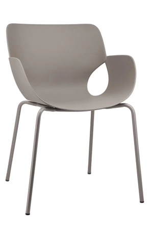 Oryginalne boczne wycięcie w siedzisku podkreśla nowoczesny kształt, a podłokietniki zwiększają wygodę.