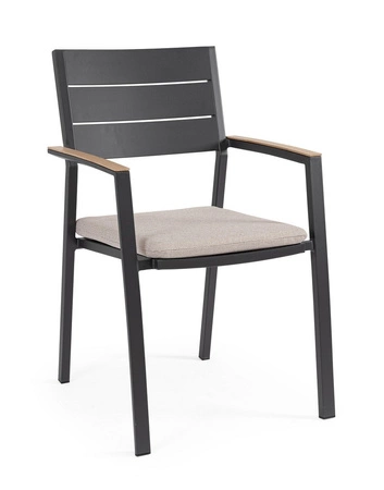 Dopełnieniem krzesła jest zdejmowana poduszka z tkaniny hydrofobowej olefin.