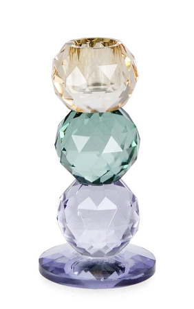 Świecznik ma formę trzech kul, przypominających szlachetne kamienie, ustawionych jedna na drugiej i osadzonych na okrągłej podstawie.