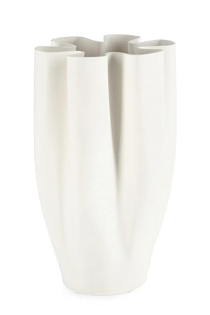 Wykonany z ceramiki drukowanej w technologii 3D, wyróżnia się płynną, organiczną linią przypominającą rozchylające się płatki lub falującą tkaninę.