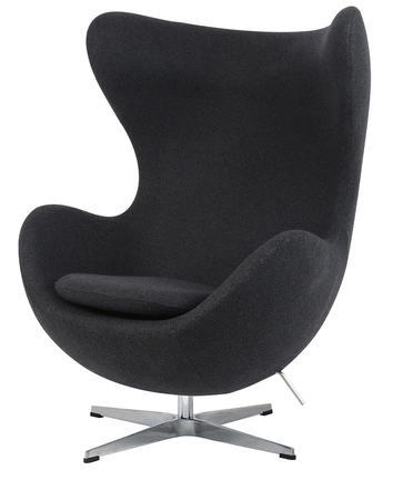 Fotel EGG CLASSIC to ikona nowoczesnego wzornictwa, której unikalny, jajowaty kształt od lat cieszy się uznaniem na całym świecie. Wersja w ciemnoszarej wełnie doskonale łączy klasyczną elegancję z nowoczesnym minimalizmem. Oryginalny projekt, inspirowany legendarnym designem, wprowadza do wnętrza wyjątkowy charakter, który sprawia, że fotel staje się centralnym punktem każdego pomieszczenia. Jego stonowany, ciemnoszary kolor doskonale współgra z różnymi paletami barw, co czyni go wszechstronnym elementem aranżacyjnym.