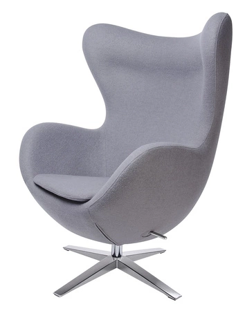 Wysokiej jakości materiał wełniany w kolorze szarym jest trwały i przyjemny w dotyku. Wełna zapewnia miękkość i komfort. Solidna stalowa podstawa zapewnia stabilność oraz trwałość fotela.