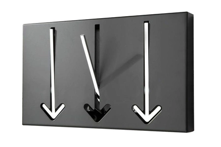Wieszak ARROW praktyczny wieszak Arrow z trzema chowanymi haczykami w kształcie strzałek skierowanych w dół.Obudowa wieszaka została wykonana z malowanego proszkowo metalu, a strzałki z chromowanej stali. Nowoczesny i oryginalny wieszak wzbudzi zainteresowanie wśród twoich gości.Wymiary: wys. 20 cm / szer. 30 cm / gł. 5 cm.