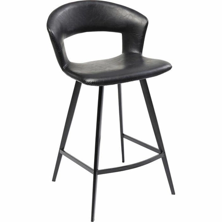 Designerskie, czarne siedzisko wykonano z poliuretanu imitującego skórę w stylu Vintage.