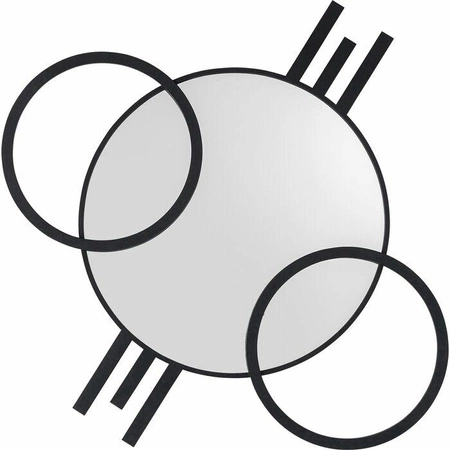 Czarna metalowa rama, wzbogacona geometrycznymi elementami, sprawia, że lustro staje się niezwykłą ozdobą, przypominającą dzieło sztuki na ścianie.