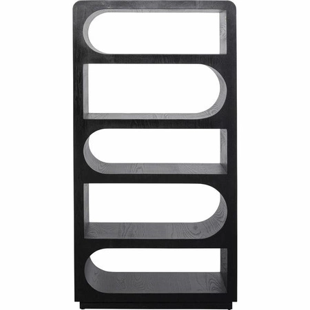 Klasyczna elegancja czarnego koloru podkreśla nowoczesny charakter regału, jednocześnie wprowadzając strukturę i wyrazistość do pomieszczenia.