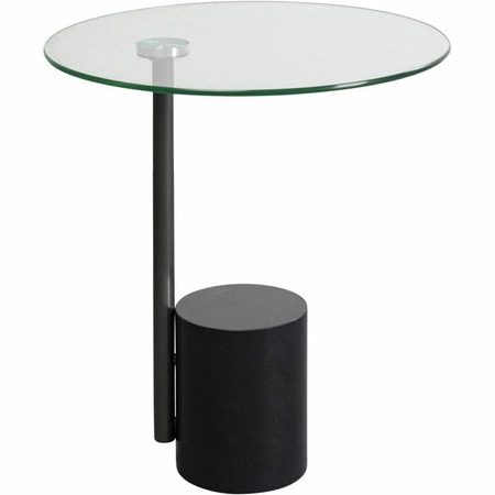 Blat wykonany z przezroczystego szkła o grubości 8 mm nadaje konstrukcji lekkości, podczas gdy solidna, cylindryczna podstawa z marmuru zapewnia stabilność i trwałość. Smukła stalowa rama w czarnym kolorze, dodaje całości nowoczesnego charakteru.
