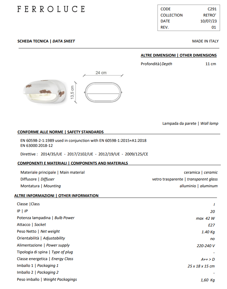 - Model: Kinkiet BRINDISI Ferroluce C291