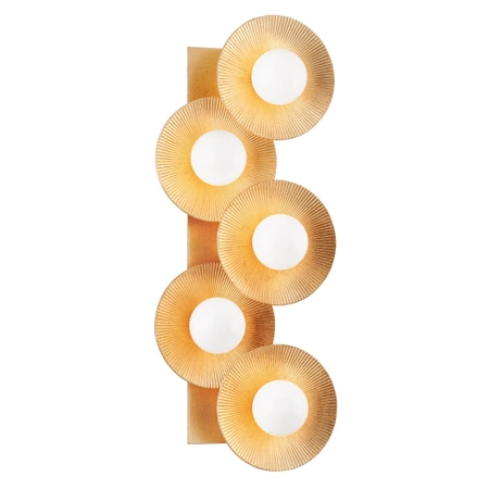 Wykończenie w Złotym Liściu (VGL): Kinkiet został wykończony w luksusowym odcieniu złotego liścia, co nadaje mu prestiżowy wygląd. Starannie dobrane materiały oraz precyzyjne wykończenie podkreślają jego wysoką jakość, czyniąc go idealnym wyborem dla osób ceniących elegancki design.: