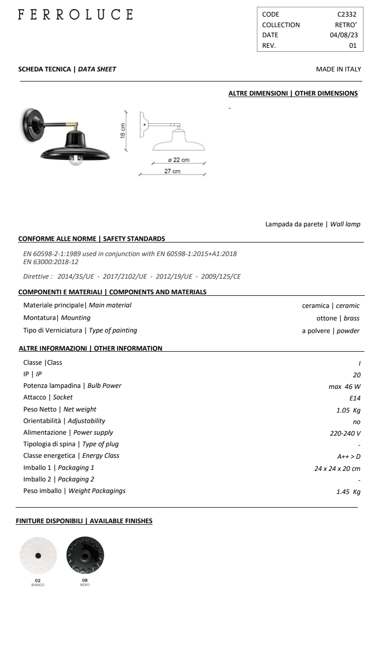 Kinkiet D.23 B&W Ferroluce C2332-08