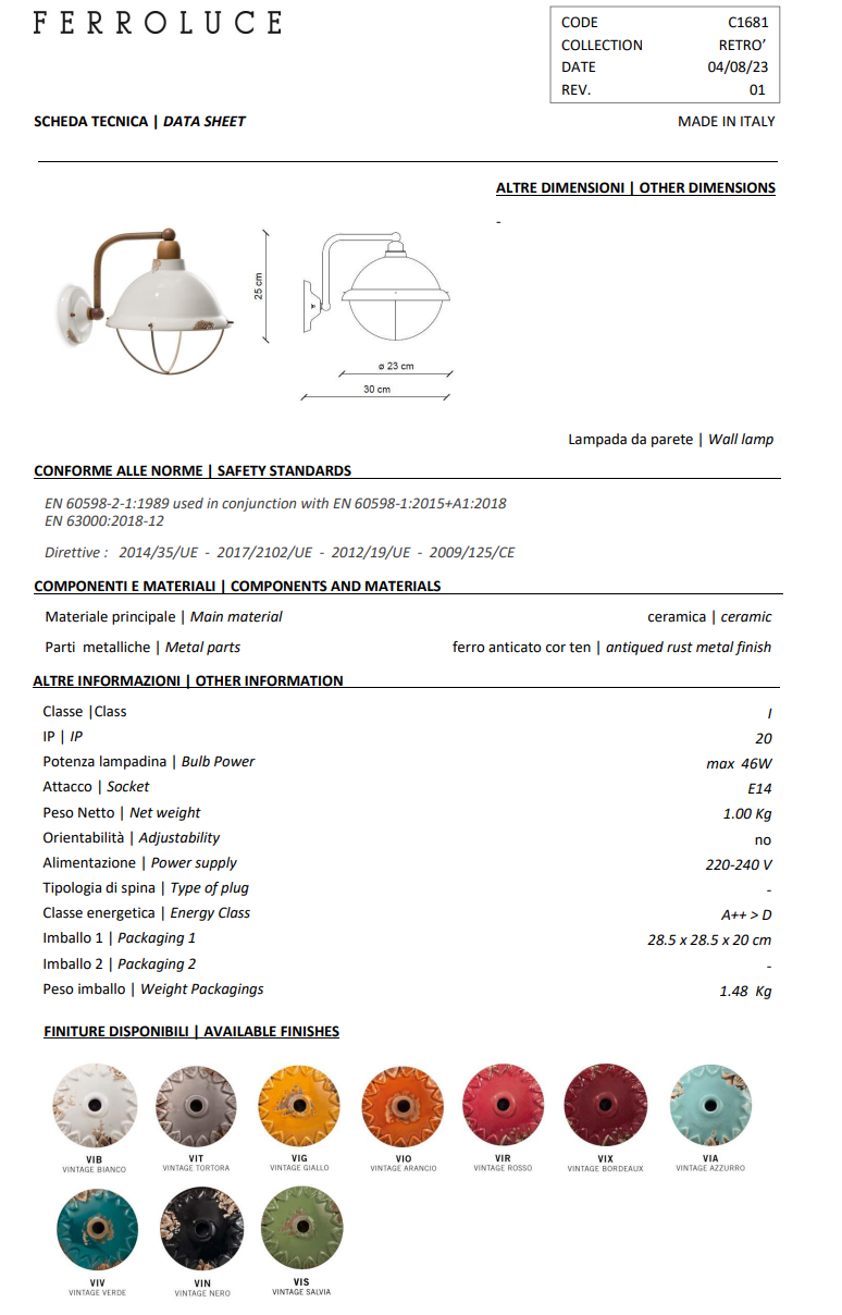 Kinkiet INDUSTRIAL Ferroluce C1681-VIB
