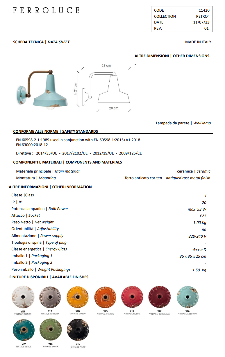 Kinkiet VINTAGE Ferroluce C1420-VIA
