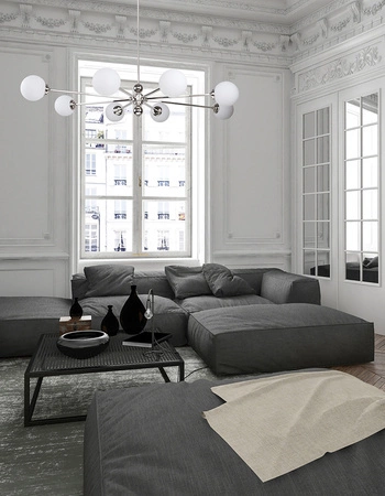 KUTEK MOOD ABANO 8 ŻYRANDOL MOSIĘŻNY NIKLOWANY KLOSZE SZKLANE OPAL MAT O ŚREDNICY 140 mm