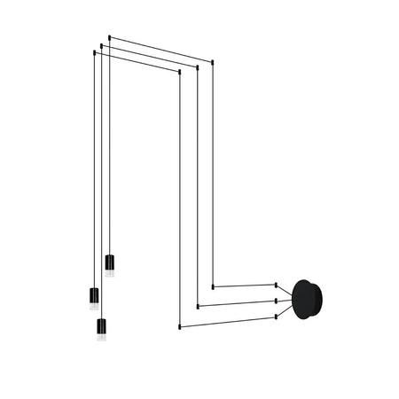 Lampa Flusso Wall 3 wykonana została z trzech metrowych przewodów osadzonych na stalowych prętach. 12 punktów do podwieszania lampy.