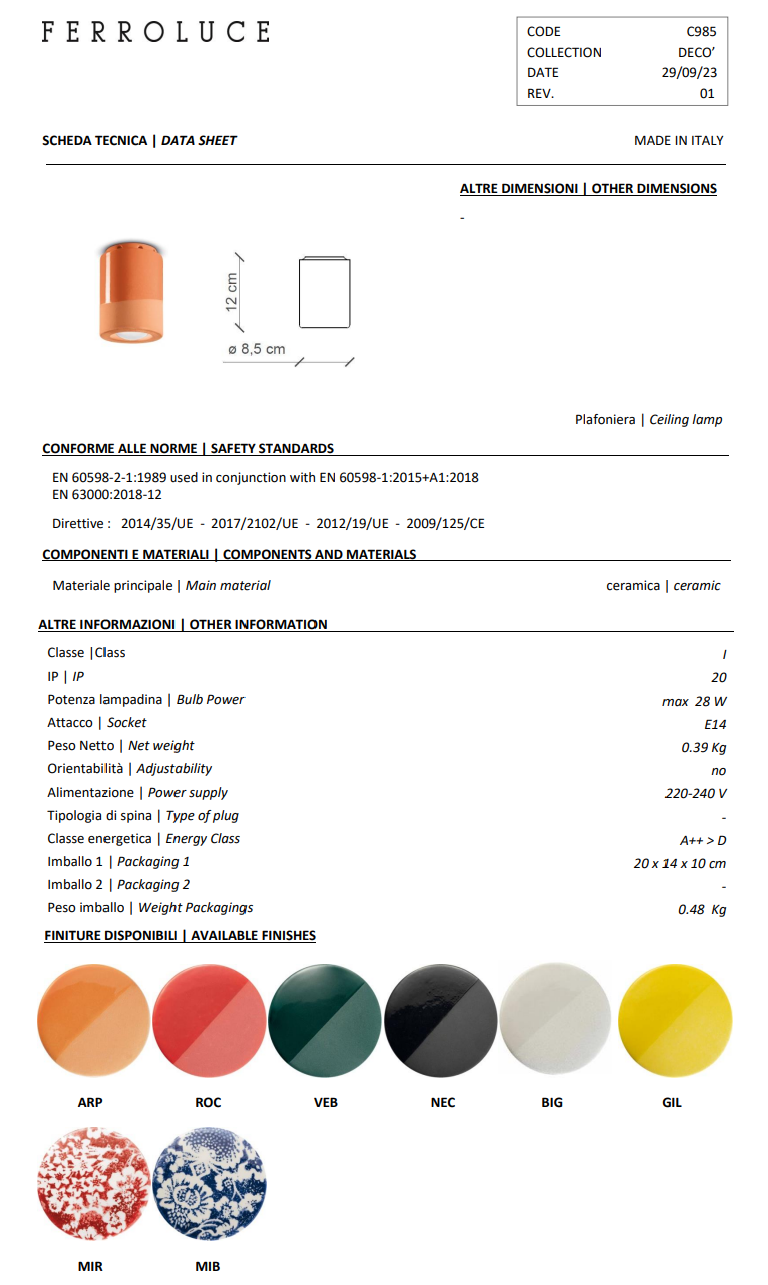 Kluczowe cechy lampy sufitowej Plafon PI Ferroluce C985: