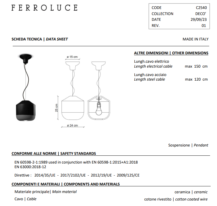 Lampa wisząca BELLOTA Ferroluce C2540 jest idealnym rozwiązaniem do różnych przestrzeni, takich jak nowoczesne salony, jadalnie, kuchnie oraz przestrzenie komercyjne, takie jak restauracje i kawiarnie. Jej nowoczesny design i wysoka jakość wykonania sprawiają, że jest doskonałym wyborem dla osób poszukujących eleganckich i funkcjonalnych rozwiązań oświetleniowych.