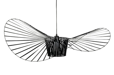 Obręcz za pomocą tasiemek połączona jest z wewnętrznym kloszem, skrywającym żarówkę. Tworząc lekką konstrukcję, przypominającą kształtem elegancki damski kapelusz. Dzięki lekkiej konstrukcji, lampa pod wpływem ruchów powietrza może się poruszać. Lampa wyposażona w czarny przewód i czarną podsufitkę. Capello dostępna jest też w innych rozmiarach i kolorach.