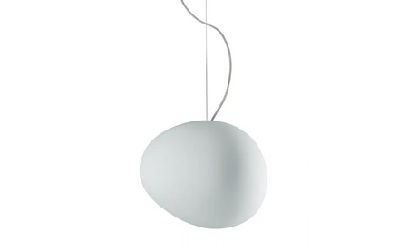 Kształt lamp Gregg przypomina duży kamień wypolerowany przez wodę lub jajko mitologicznego zwierzęcia, symbol tworzenia i regeneracji. To czysta forma, znajoma w łatwej interpretacji, a jednocześnie zaskakująca ze względu na asymetryczny kształt, który zmienia się w zależności od perspektywy widza. Innowacyjne podejście do tradycyjnego materiału, jakim jest szkło dmuchane, staje się sposobem na nadanie oryginalnego charakteru wnętrzu. Dostępne są trzy różne rozmiary w wersjach wiszącej, stołowej, sufitowej i ściennej oraz cztery różne rozwiązania w wersji podłogowej: kolekcja Gregg jest jedną z najbardziej wszechstronnych i uniwersalnych, łatwo dostosowującą się do każdego kontekstu. W domu ciepłe i równomierne światło emitowane przez biały, satynowy dyfuzor oraz jego minimalistyczny styl nabierają silnej wartości funkcjonalnej i dekoracyjnej. Dzięki zamkniętej formie dyfuzora, żarówka jest osłonięta z każdej strony, co chroni przed oślepieniem i ułatwia montaż na różnych wysokościach.