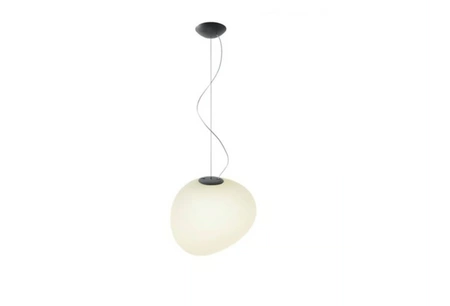 Kształt lamp Gregg przypomina duży kamień wypolerowany przez wodę lub jajko mitologicznego zwierzęcia, symbol tworzenia i regeneracji. To czysta forma, znajoma w łatwej interpretacji, a jednocześnie zaskakująca ze względu na asymetryczny kształt, który zmienia się w zależności od perspektywy widza. Innowacyjne podejście do tradycyjnego materiału, jakim jest szkło dmuchane, staje się sposobem na nadanie oryginalnego charakteru wnętrzu. Dostępne są trzy różne rozmiary w wersjach wiszącej, stołowej, sufitowej i ściennej oraz cztery różne rozwiązania w wersji podłogowej: kolekcja Gregg jest jedną z najbardziej wszechstronnych i uniwersalnych, łatwo dostosowującą się do każdego kontekstu. W domu ciepłe i równomierne światło emitowane przez biały, satynowy dyfuzor oraz jego minimalistyczny styl nabierają silnej wartości funkcjonalnej i dekoracyjnej. Dzięki zamkniętej formie dyfuzora, żarówka jest osłonięta z każdej strony, co chroni przed oślepieniem i ułatwia montaż na różnych wysokościach.