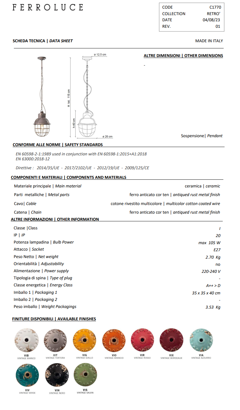 Lampa Wisząca INDUSTRIAL Ferroluce C1770 to doskonałe połączenie funkcjonalności i stylu. Jest to nie tylko źródło światła, ale również wyrazisty element dekoracyjny, który podkreśli unikalny charakter każdego wnętrza. Wybierz jakość i nowoczesny design, wybierz Lampa Wisząca INDUSTRIAL Ferroluce C1770!