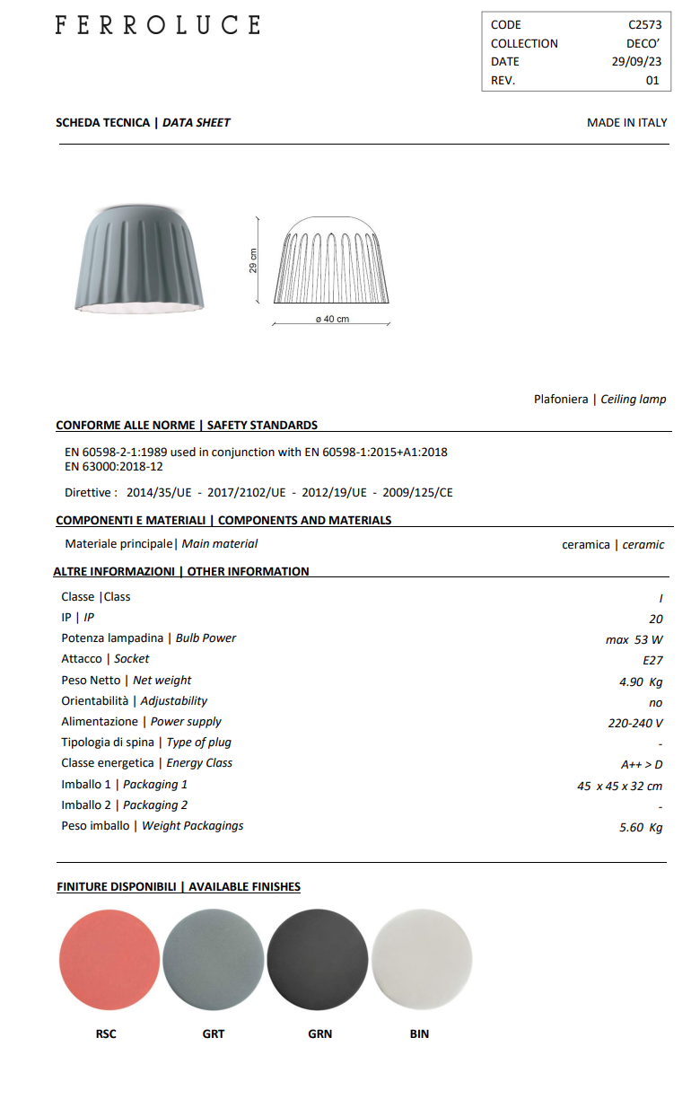 Lampa Ferroluce C2573 to perfekcyjne połączenie elegancji i prostoty, które doskonale wpisuje się w nowoczesne trendy wnętrzarskie. Wykonana z wysokiej jakości ceramiki, ta lampa sufitowa z kolekcji Deco' to idealny wybór dla tych, którzy pragną wprowadzić do swojego domu wyjątkowy styl i funkcjonalność.