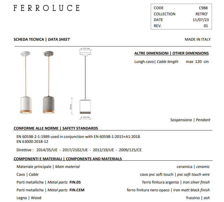 Lampa wisząca MATECA Ferroluce C988 to nowoczesne oświetlenie, które łączy w sobie elegancję ceramiki z surowością drewna i metalu. Dzięki unikalnemu designowi idealnie wpisuje się w aranżacje wnętrz w stylu industrialnym, loftowym oraz skandynawskim.