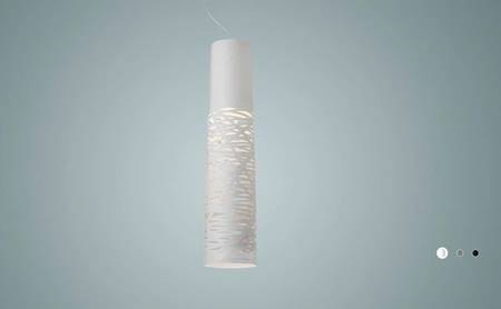 Lampa wisząca wykonana z materiału kompozytowego z lakierowanego włókna szklanego, przypominająca splątane kable osadzone w żywicy, co nawiązuje do tekstury koszyków. Niezwykłe połączenie światła i materii, pozornie losowo rozmieszczone w formie, przywołujące ciepły dotyk tkaniny, co tworzy wizualny i dotykowy efekt sensoryczny o dużej urodzie. Tress dostępna jest w kolorach: białym, czarnym i czerwonym, z różnymi osobowościami: czarna wyraźnie podkreśla plecioną strukturę, która tworzy trójwymiarową dekorację, biała wersja jest bardziej lekka i dyskretna, a kolor czerwony dodatkowo podkreśla siłę znaku Tress oraz grę światła i cienia. Lampa kieruje wiązkę światła w dół, a przy użyciu kilku lamp w kolejności tworzy oryginalne efekty wizualne, idealne do dużych przestrzeni.