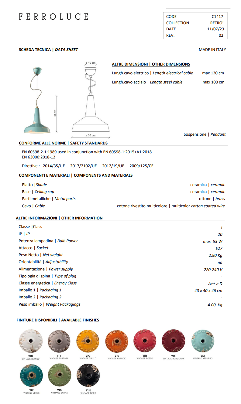 lampa wisząca VINTAGE Ferroluce C1417