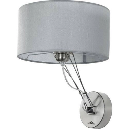 Podstawa kinkietu jest bez włącznika. Perfekcyjne wykonanie metalowych części, możliwość manewrowania ramieniem i ustawiania go pod odpowiednim kątem, abażur wykonany z syntetycznego materiału o fakturze juty, pięknie filtruje światło.