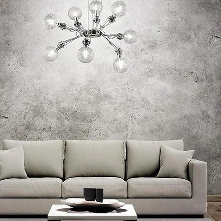 Osiem regulowanych ramion wykonanych ze stali nierdzewnej siedzi w wiszącej lampie Matrix Otto na okrągłym centralnym elemencie lampy i każde może być regulowane indywidualnie. Ramiona trzymają tylko jedno gniazdo E27 każde, odcienie zostały całkowicie pominięte. Dzięki możliwości wyboru żarówek (żarówki z przezroczystego lub barwionego szkła z technologią żarnika wyglądają szczególnie pięknie) można zmienić wygląd lampy wiszącej i jej efekt świetlny.
