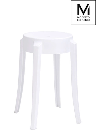 Stołek w całości wykonany jest z polipropylenu w kolorze białym matowym.