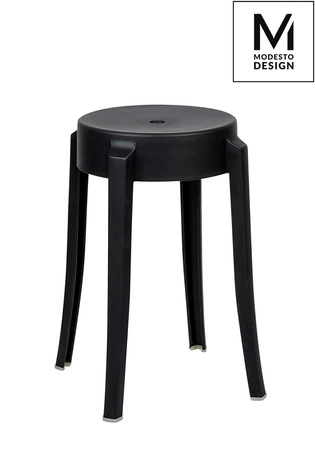 Stołek w całości wykonany jest z polipropylenu w kolorze czarnym matowym.