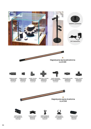 Oświetlenie gablot jubilerskich i muzealnych MUZJUBI, zasilenie do szyny dwustronnej