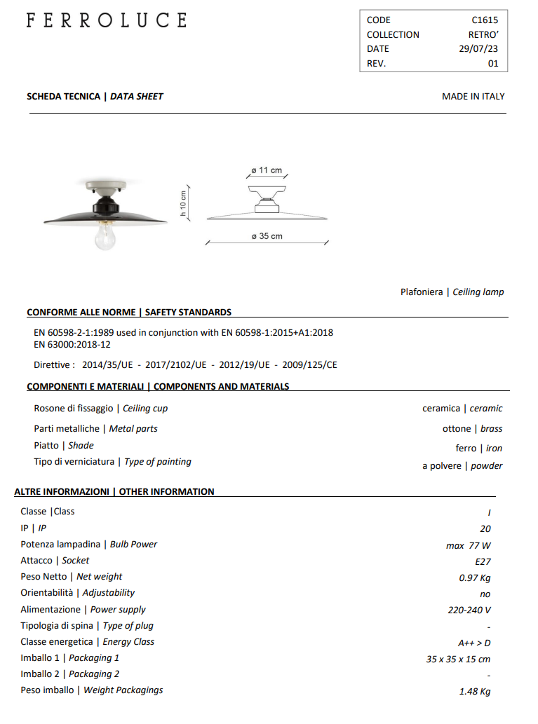PLAFONIERA D.35 / CEILING LAMP D.35 B&W Ferroluce C1615