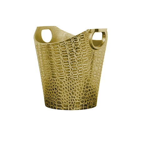 Ten efektowny cooler do wina w formą przypomina metalowy kosz z uchwytami.