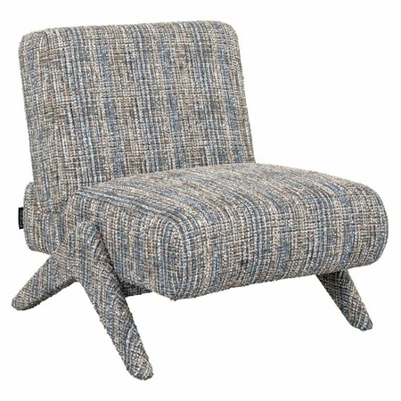 Wykonany z pianki, bawełny oraz sklejki, fotel ten jest w całości pokryty luksusową tkaniną w kolorze Blue coco z niebiesko-beżowym wzorem, inspirowanym stylem domu mody Chanel. Jego klasyczna forma na nóżkach nadaje mu lekkości, a jednocześnie zapewnia wygodę.