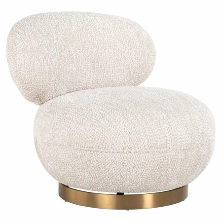 RICHMOND fotel obrotowy JACE beżowy.Elegancja połączona z przytulnością oraz najwyższą wygodą.Piękne, pomarańczowe siedzisko wykonano z jasnej tkaniny o nazwie Be Lovely 11 Cream (100% poliester).Złota, obrotowa podstawa dopełnia luksusowy wygląd.Jace to również wspaniała dekoracja dla nowoczesnego domu.Polecamy zestawić z pufą z kolekcji.Wymiary: wys. 77 cm / szer. 79 cm / gł. 83 cmWaga brutto: 23,4 kg.