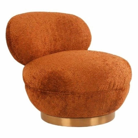 RICHMOND fotel obrotowy JACE pomarańczowy.Elegancja połączona z przytulnością oraz najwyższą wygodą.Piękne, pomarańczowe siedzisko wykonano z pluszowej tkaniny o nazwie Be Lovely 603 Cinnamon (100% poliester).Miedziana, obrotowa podstawa dopełnia luksusowy wygląd.Jace to również wspaniała dekoracja dla nowoczesnego domu.Polecamy zestawić z pufą z kolekcji.Wymiary: wys. 77 cm / szer. 79 cm / gł. 83 cmWaga brutto: 23,4 kg.