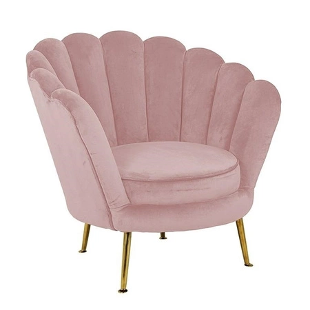 RICHMOND fotel PERLA PINK VELVET.Welurowy, różowy fotel o modnym kształcie muszelki idealnie sprawdzi się u każdego miłośnika designu.Podstawa wykonana została z metalu w eleganckim złotym kolorze.Dostępny w różnych wersjach kolorystycznych.Fotel Perla charakteryzuje się najwyższą jakością oraz wygodą.Wymiary: wys. 76 cm / szer. 78 cm / gł. 81 cmWaga brutto: 20 kg.
