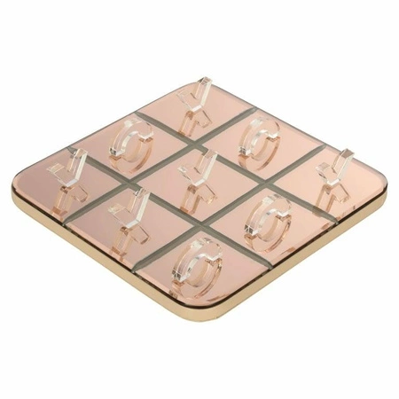Całość wykonano z pełną precyzją ze szkła, akrylu oraz MDF i wykończono w pięknym odcieniu różówego złota.