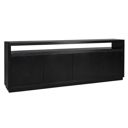 RICHMOND komoda OAKURA.Oakura to szykowna kolekcja, wykonana z forniru dębowego barwionego na czarno, który ma piękną widoczną strukturę drewna.Ta minimalistyczna komoda ma chłodny, a zarazem szykowny charakter, który pasuje do prostych linii i pastelowych kolorów nowoczesnego wystroju.Czarna kolorystyka zapewnia kontrast w jaśniejszych pomieszczeniach oraz dobrze komponuje się z ciemniejszymi meblami.Komoda Oakura posiada 4 drzwi, za którymi kryje się 8 praktycznych półek, zapewniając przy tym mnóstwo miejsca do przechowywania.Świetnie sprawdzi się w nowoczesnym salonie lub jadalni.Dostępna cała kolekcja.Wymiary: wys. 85 cm / szer. 240 cm / gł. 40 cmWaga brutto: 117 kg.