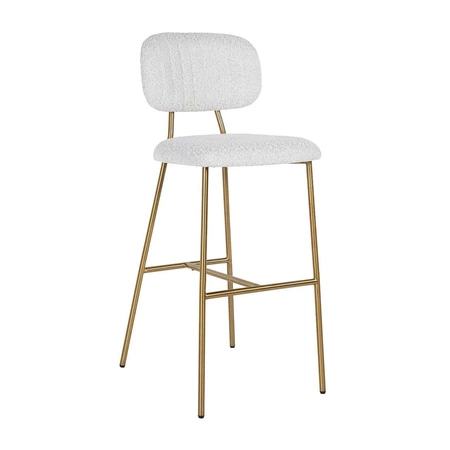 RICHMOND krzesło barowe XENIA WHITE BOUCLÉ.Oparcie z wyraźnymi przeszyciami i siedzisko tapicerowane z tkaniny typu boucle w kolorze białym. Podstawa wykonana w całości ze szczotkowanej stali w kolorze złotym. Praktyczny podnóżek umiejscowiony na odpowiedniej wysokości zapewniającej komfort.Wymiary: wys. 109,5 cm / szer. 45,5 cm / gł. 53 cmWysokość do krawędzi siedziska: 79 cmSiedzisko: gł. 45 cmWaga netto: 17,5 kg.