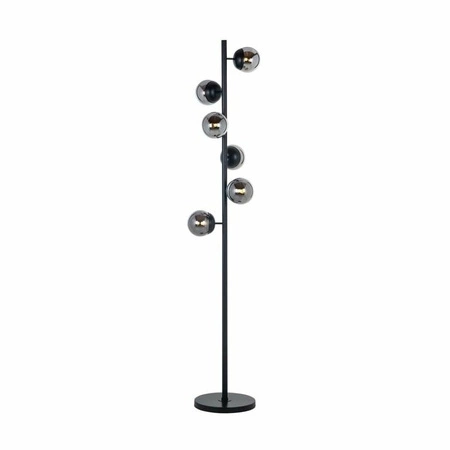 RICHMOND lampa podłogowa ZOLA czarna.Ta wyjątkowa lampa składa się z metalowej podstawy w czarnym eleganckim odcieniu oraz 6 dymionych szklanych kloszy w kształcie kuli, co nadaje jej charakterystyczny wygląd.Zola będzie doskonałym dodatkiem do każdego stylu wnętrza oraz pomieszczenia.Idealnie sprawdzi się w zestawie z lampą wiszącą Bente w kolorze czarnym.Dostępna również wersja z różowymi kloszami.Światło: 6 x G9 max. 40 W lub LED max. 5W (brak w zestawie)Oprawa: wys. 166 cm / szer. 34 cm / gł. 34 cmWaga brutto: 8,6 kg.
