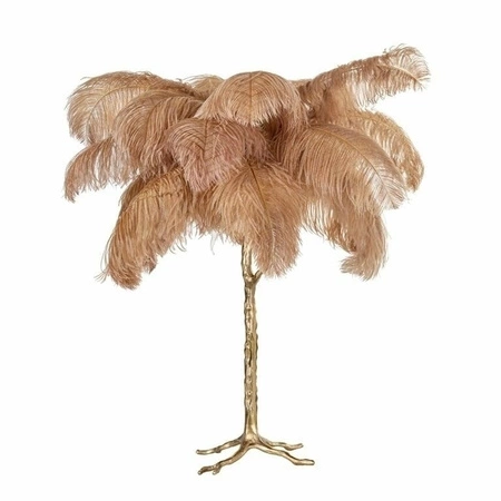 RICHMOND lampa stołowa UPANOVA khaki (beżowa).Producent Richmond Interiors stworzył niezwykle charakterystyczną lampę stołową z beżowych piór z podstawą w kolorze miedzi.Upanova doskonale pasuje do stylu Art Deco oraz chłodnych, nowoczesnych wnętrz.Ta lampa w kształcie drzewa nada ciekawy, tropikalny klimat Glam do każdego pomieszczenia.Świetnie sprawdzi się w salonach Beauty oraz salonie, pokoju dziecięcym czy sypialni jako ozdoba.Dostępne różne wersje kolorystyczne: biała, czarna, różowa.Polecamy skomponować ją z lampą wiszącą Anisha oraz podłogową Burlesque.Światło: 3 x E14 max. 40 W (brak w zestawie)Oprawa: wys. 80 cm / szer. 75 cm / gł. 75 cmWaga netto: 1,8 kg.