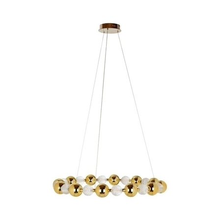 RICHMOND lampa wisząca CHANDA.Niczym elegancka tiara, lampa wisząca Chanda marki Richmond Interiors ozdobi Twój sufit swoim prostym, aczkolwiek oszałamiającym designem. Naprzemienne złote i kryształowe kule tworzą aureolę zawieszoną na suficie, tworząc subtelny punkt centralny w nowoczesnym salonie lub jadalni.Całość wykonana została z akrylu oraz metalu.Światło: LED 30 W (ściemnialny) Oprawa: wys. 130 cm / szer. 87 cm / gł. 87 cmPrzewód: 150 cmMontaż: instalacja sufitowaWaga netto: 6,8 kg.
