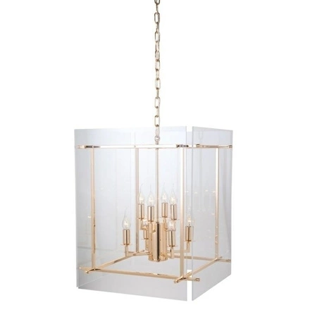 RICHMOND lampa wisząca CHESS.Lampa wisząca Chess firmy Richmond Interiors posiada wykończoną złotem metalową ramę i świecowe eleganckie żarówki zamknięte w przezroczystej osłonie wykonanej z akrylu.Całość opiera się na długim złotym łańcuchu wykonanym z metalu.Złote detale i delikatne szklane żarówki nadają tej lampie okazały wygląd.Polecamy do eleganckich wnętrz w stylu Glamour lub Hamptons.Światło: 8 x E14 max. 25 W (brak w zestawie)Oprawa: wys. 64 cm / szer. 51 cm / gł. 51 cmMontaż: instalacja sufitowaWaga netto: 12,9 kg.