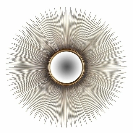 RICHMOND lustro ścienne CASS okrągłe.Cass to piękne lustro o nietuzinkowym, eleganckim designie.Idealnie sprawdzi się w roli dekoracji we wnętrzach nowoczesnych lub w stylu Hamptons.To okrągłe lustro, ozdobione smukłymi złotymi promieniami, jest tak majestatycznym widokiem, że czyni każdą ścianę niezwykłą.Zdobiona rama wykonana została z płyty MDF oraz metalu.Wymiary: wys. 90 cm / szer. 90 cm / gł. 2 cmWaga brutto: 6,6 kg.